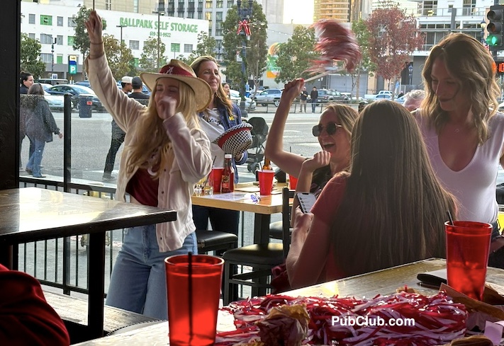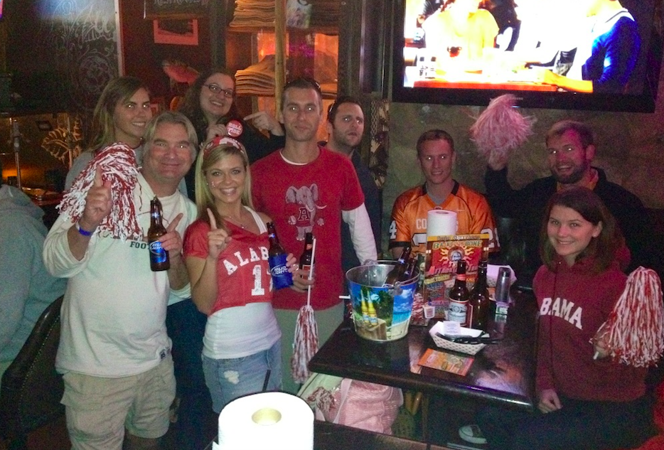 Alabama fans (including myself) gather in a sports bar to watch the Crimson Tide. Photo: PubClub.coIf you are in a dedicated team bar then you can cheer louder than a regular sports bar because you are among fellow fans. Talk to people, high-five good plays and enjoy the camaraderie. If you are in a general sports bar it’s okay to let out a cheer on big plays; others there will likely be doing the same while watching their team.As far as drinking – I mean, you’re in a bar for cryin’ out loud and you’re going to be drinking – know your pace and your limits. I am lucky in that I have some type of internal system that has me automatically slow down my pace as I start to get buzzed.