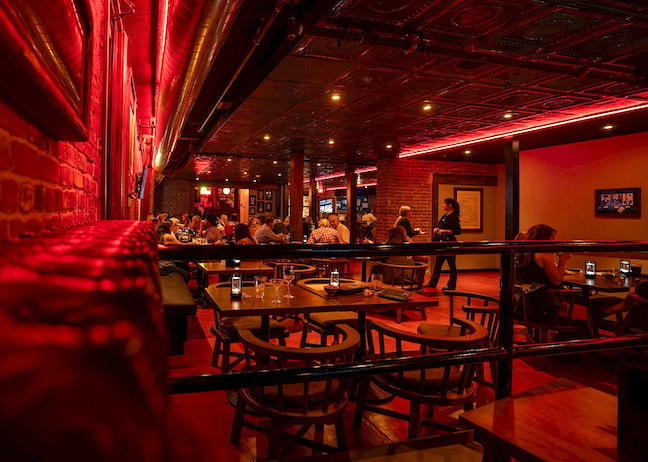 Drinks include names that fit the area and its history, including the Royal Flush Martini and The Honest Opinion. The bar also serves local craft beers and wines.