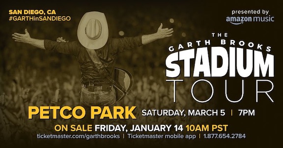 “Being selected as the only West Coast stop on Garth’s Stadium Tour further establishes Petco Park as an iconic entertainment venue in Southern California. We look forward to welcoming music fans from all over the western region for an unforgettable show.”