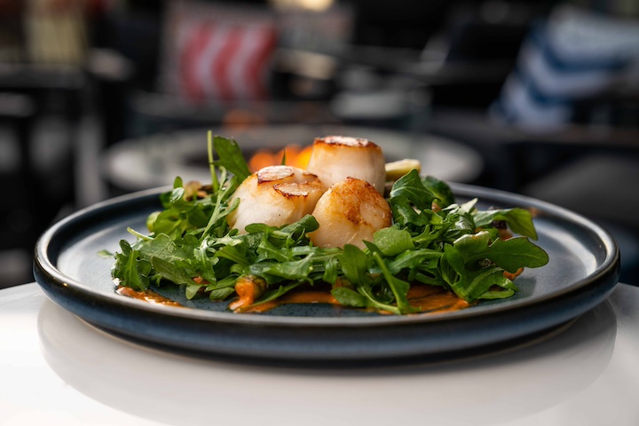 • Seared Mano de Leon scallops, served with root vegetable hash, pomegranate seeds and arugula piri piri, priced at $32.