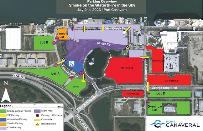 This is the “Water & Fire in the Sky” fireworks parking map. Image: Canaveral Port Authority