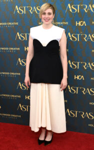 Greta Gerwig picks her Sommsation Wines gift wine in the winners’ room at ASTRA Awards