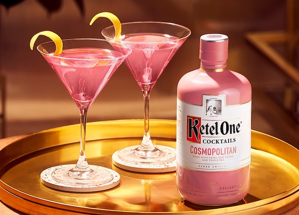 Ketel One Vodka Cosmopolitan – Juicy citrus and cranberry flavors perfectly balanced with a hint of orange blossom. To enjoy, chill, open and pour into a coupe or martini glass.