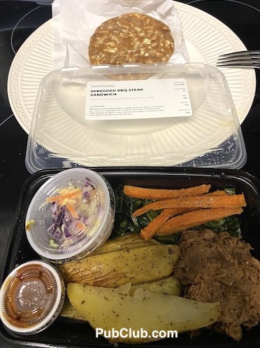 • Barbeque Steak Sandwich. This is a complete meal that with a mound of meat – it comes in a ball about the size of an orange – with sauce, thick-cut wedges of potatoes, a side of cole slaw and spinach. You’ll never find that healthy touch in any BBQ joint. The bun is thin and is not your standard white bread; rather it’s a healthier version of bread. The taste is true BBQ, so much so it’s easy to forget you are eating healthy. The seasoned potato wedges are really good.