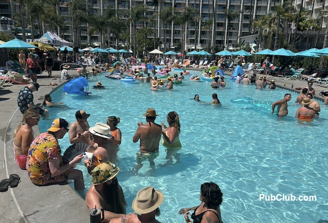 It’s hard to pick out a highlight at Tiki Oasis but I suppose if I had to choose one, it would be the pool party scene. I mean, being in a pool, having drinks brought to you by the pool bar staff (you do have to pay for them, by the way; $8-10 for beers and $15-ish for cocktails) and a band playing poolside is something one does not gets to experience very often. That’s a big part of what makes Tiki Oasis a tropical paradise mini vacation.