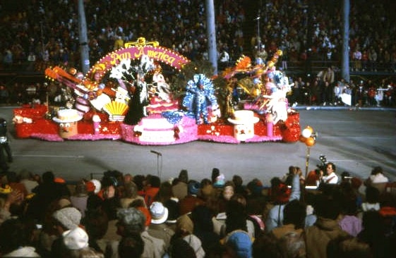 The parade went down Biscayne Blvd., and it was broadcast nationally. In fact, it was the only nighttime parade in the country shown on national TV. Some 500,000 people turned out for it and the floats were extravagant.