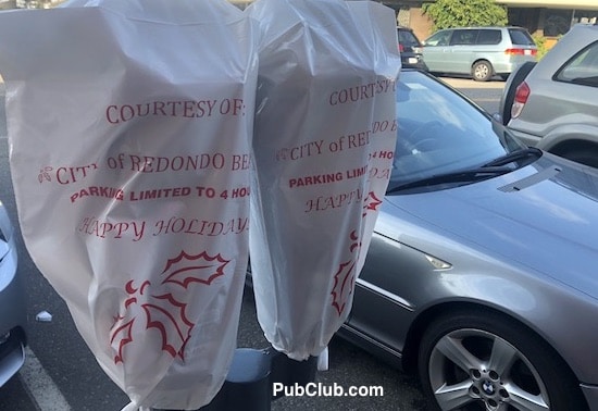 I was in Redondo Beach, California, looking for a spot where I could park for free to go for a meeting (hey, when I know there’s free parking somewhere I don’t like paying for it, let alone worrying about a meter expiring) when I saw those familiar white plastic bags covering the meters.